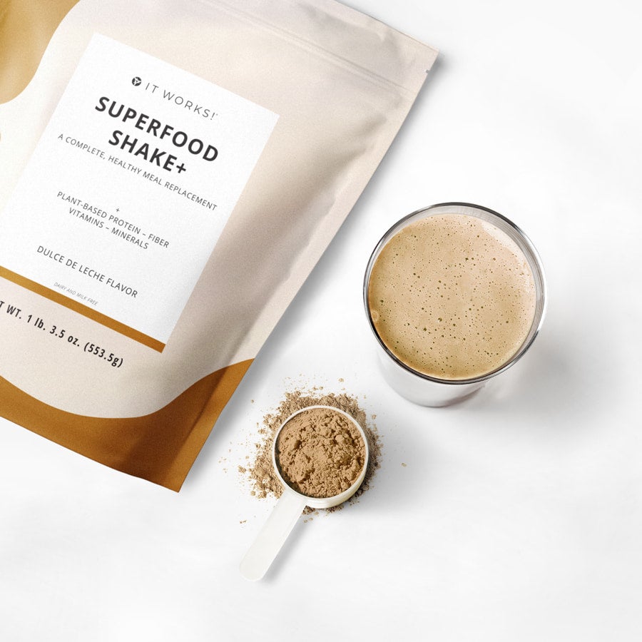 It Works! Superfood Shake+ is the complete healthy meal replacement you need to shake up your diet! Mixed in seconds, this vegan shake is fortified with fiber, 22 vitamins and minerals, and contains 15 g of plant-based protein that helps you feel fuller longer. This smooth and creamy formula also supports your metabolism while providing a delicious daily ritual you’ll love.