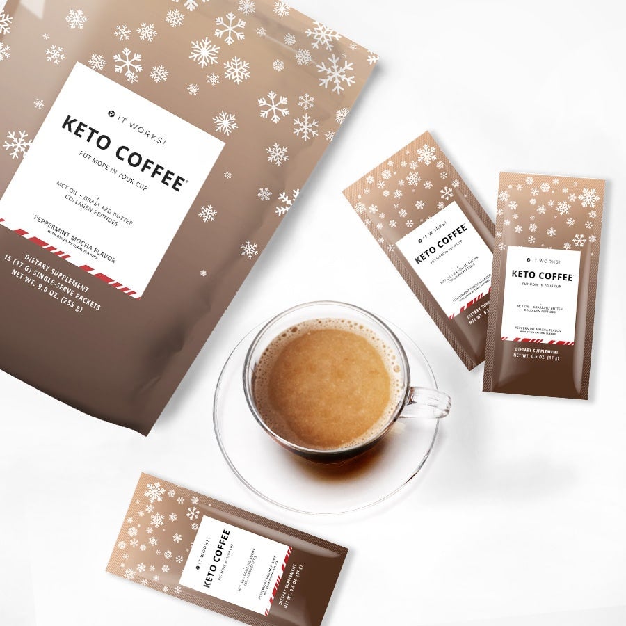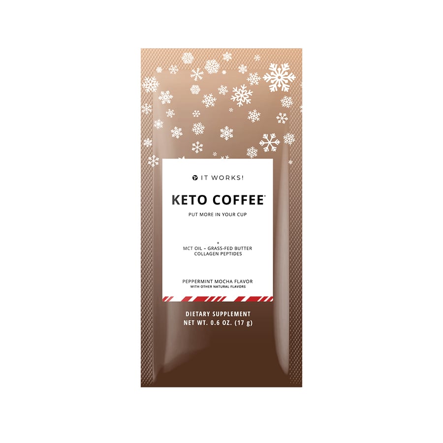 3 It Works! Keto Coffee® – Peppermint Mocha Flavor bags (45 total single-serve packets)