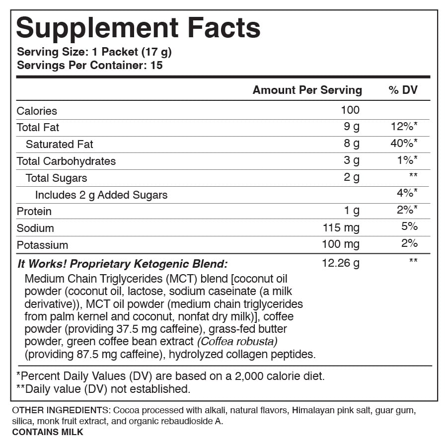 It Works! Keto Coffee® is more than just coffee—it’s premium-tasting support for your lifestyle. Filled with clean, quality fats like naturally sourced Medium Chain Triglycerides (MCTs) and grass-fed butter, each single-serve packet sustains mind-and-body energy.† You’ll revel in each brimming cup as this instant coffee fuels ketone creation and offers you a caffeine kick that won’t break your fast.†