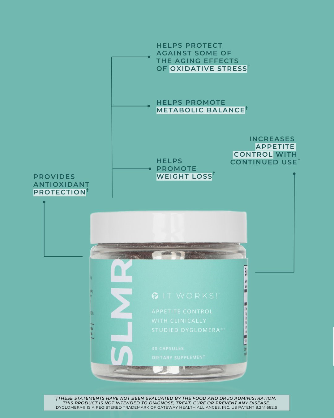 What if appetite control came in a capsule? Meet the easiest addition to your healthy weight management routine: SLMR! Featuring Dyglomera®, a powerful ingredient that's been clinically studied to help you achieve significant weight loss in just eight weeks, this daily capsule makes all the difference in reaching your goals.†